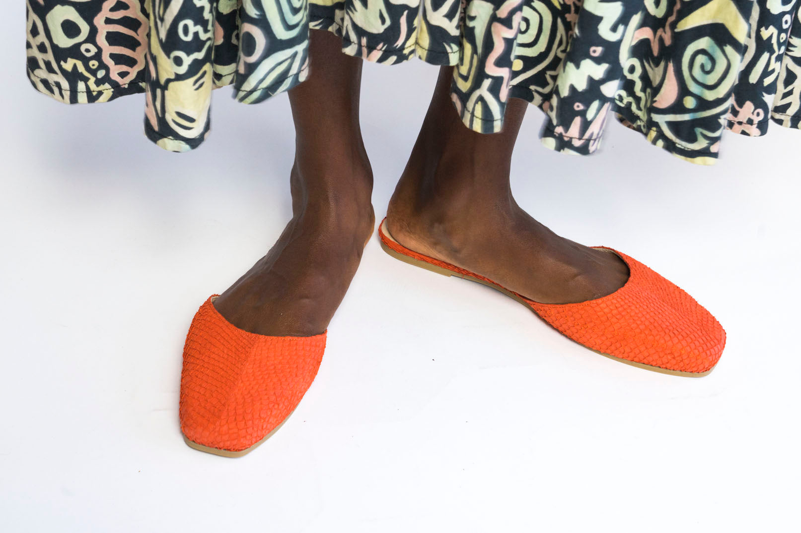 As delicate as ballet slippers, these slip-ons add a sleek flourish to whatever you’re wearing. We love the perfect hint of toe cleavage as much as the chic look of the rounded square toe. Pair your Dainty Mules with something a little oversized or rough—is there anything more compelling and cool than the clash/synergy of contrast? We love stepping into them for cocktail parties, weddings, cozy dinners out, and anything we want to look low-key dressy for. Handmade, as all NAYLAS are, with fish leather, the mules age beautifully and look as gorgeously textured brand spanking new as they do lived-in and love-worn. Plus, they have a cushiony foam insert to keep your feet happy.